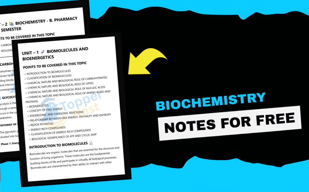 Looking for a reliable study resource to excel in Biochemistry during your B. Pharmacy course? Our professionally curated notes at Toppernest.com are designed to help you understand essential biochemical concepts, enzyme mechanisms, metabolism of carbohydrates, proteins, and lipids, as well as the structure and function of biomolecules with ease and confidence.