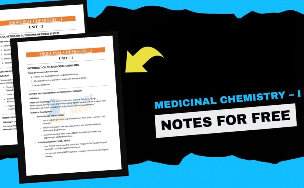 Our Medicinal Chemistry – I Notes are carefully prepared to make your study experience simple, well-structured, and exam-focused. Whether you need clear explanations of drug classification, mechanisms, SAR, or synthesis of important medicinal compounds, these notes are designed to help you grasp the concepts thoroughly and retain them effectively.