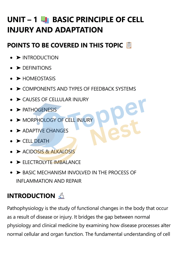 Unit 1 – Basic Principles of Cell Injury, Adaptation, Inflammation and Repair Notes (B. Pharmacy)