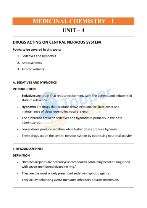 Sleep disorders, anxiety, psychosis, and epilepsy all originate from disturbances in the central nervous system (CNS). Modern medicinal chemistry provides a wide range of drugs that either depress or stabilize brain activity to restore normal function. UNIT 4 explores three major therapeutic groups—sedatives–hypnotics, antipsychotics, and anticonvulsants—and explains how molecular structure determines pharmacological effect.