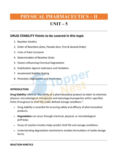 Unit 5 – Drug Stability & Reaction Kinetics Notes