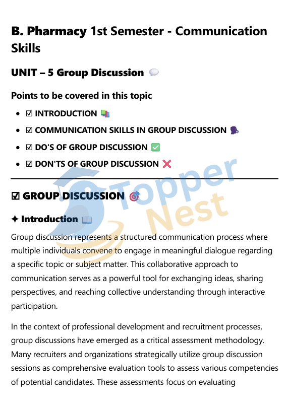 Group discussions are an essential part of academic, professional, and competitive settings. This article covers the basics of group discussions, highlighting their importance and role in evaluating communication skills. You’ll also learn the key do’s and don’ts to follow for an effective and impactful participation. Whether you’re preparing for interviews, campus placements, or just want to improve your teamwork and communication, this guide will help you succeed.