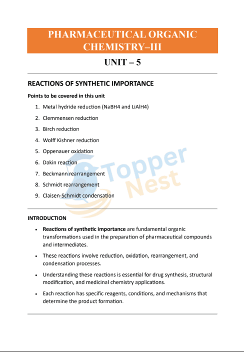 UNIT 5 highlights these synthetically important reactions, giving students practical tools for designing and modifying drug molecules in laboratories and industry.
